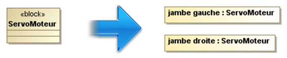 Remarque : Les parts "left" et "right" représentent 2 instances (exemplaires) du block "Enceinte".